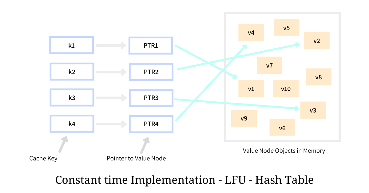 In this essay, we take a look at Constant Time LFU implementation based on the paper An O(1) algorithm for implementing the LFU cache eviction scheme by Prof. Ketan Shah, Anirban Mitra and Dhruv Matani, where instead of using a min-heap, it uses a combination of doubly-linked lists and hash table to gain a running time complexity of O(1) for all the three core operations.